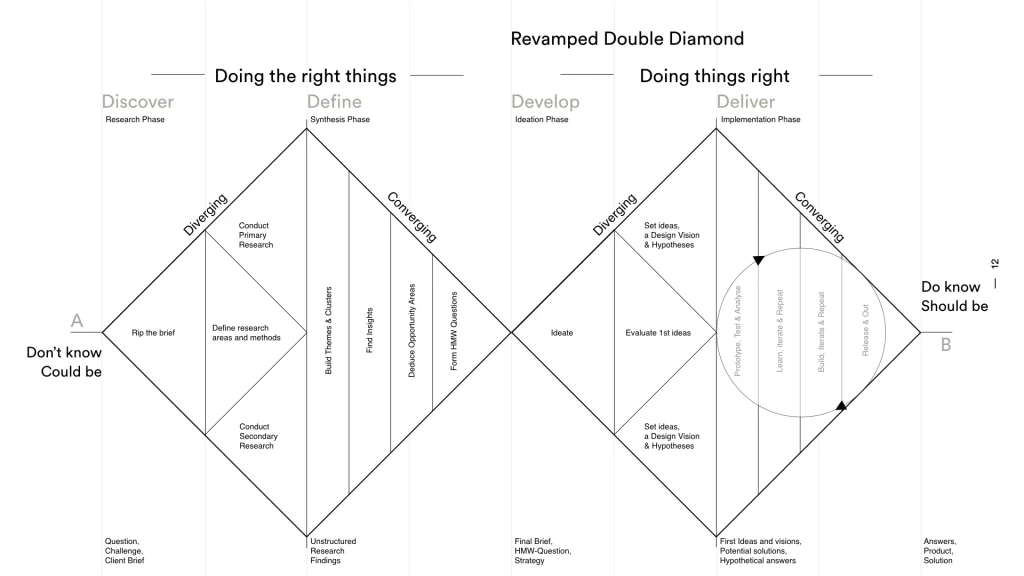 In short: my process is consistent in its structure but flexible in its sequence, adapting to the needs of each project. This adaptability allows me to deliver solutions that are both user-centered and business-driven, while collaborating seamlessly with cross-functional teams. This rhythm of divergence and convergence keeps the process structured yet flexible, ensuring creativity without losing focus.