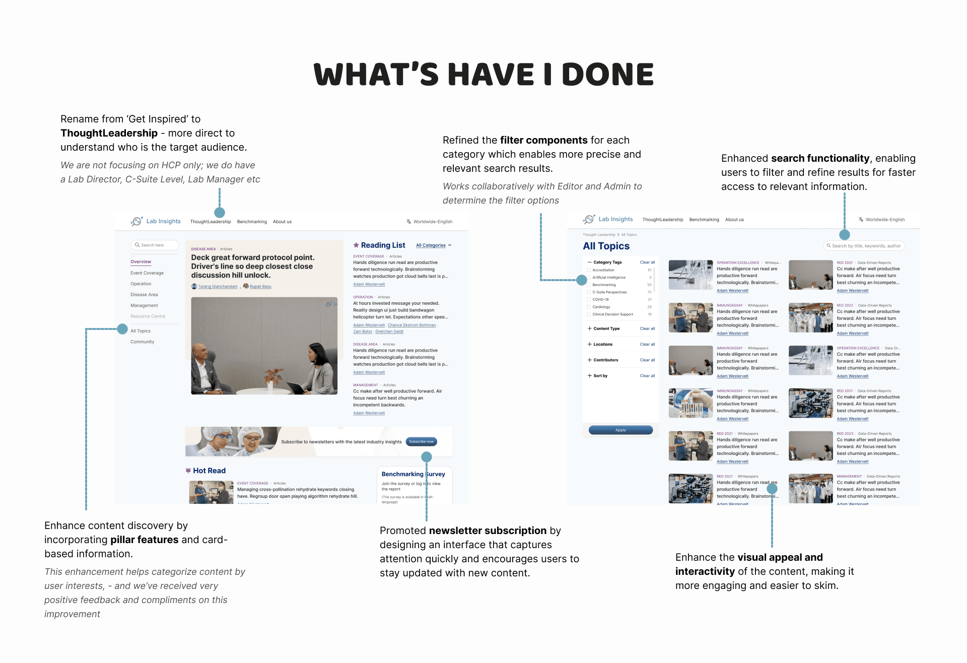 Conducted collaborative sessions with stakeholders and end-users to understand the current journeys. Noted friction points from both user experiences (confusing navigation, inconsistent branding) and business goals (poor content visibility, low dashboard engagement).Conducted A/B Testing for Design Validation